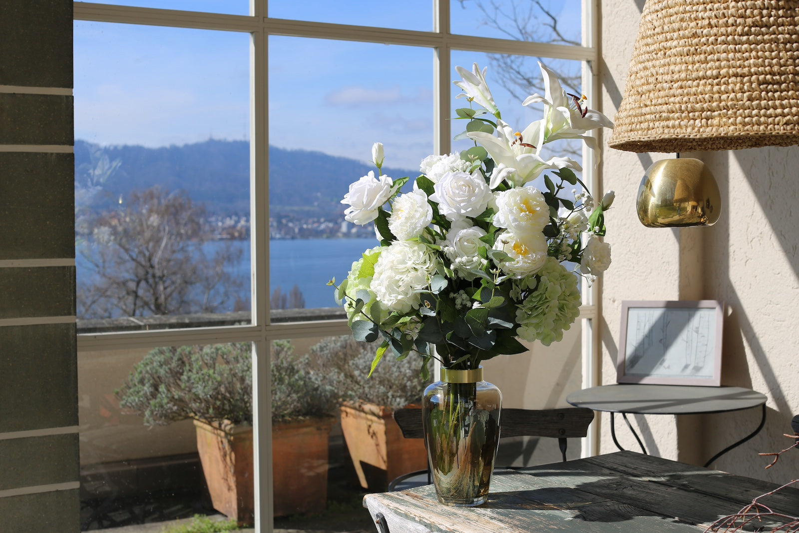 Every one of our luxury faux flower arrangements has been designed in-house, with the utmost care & attention, in switzerland.